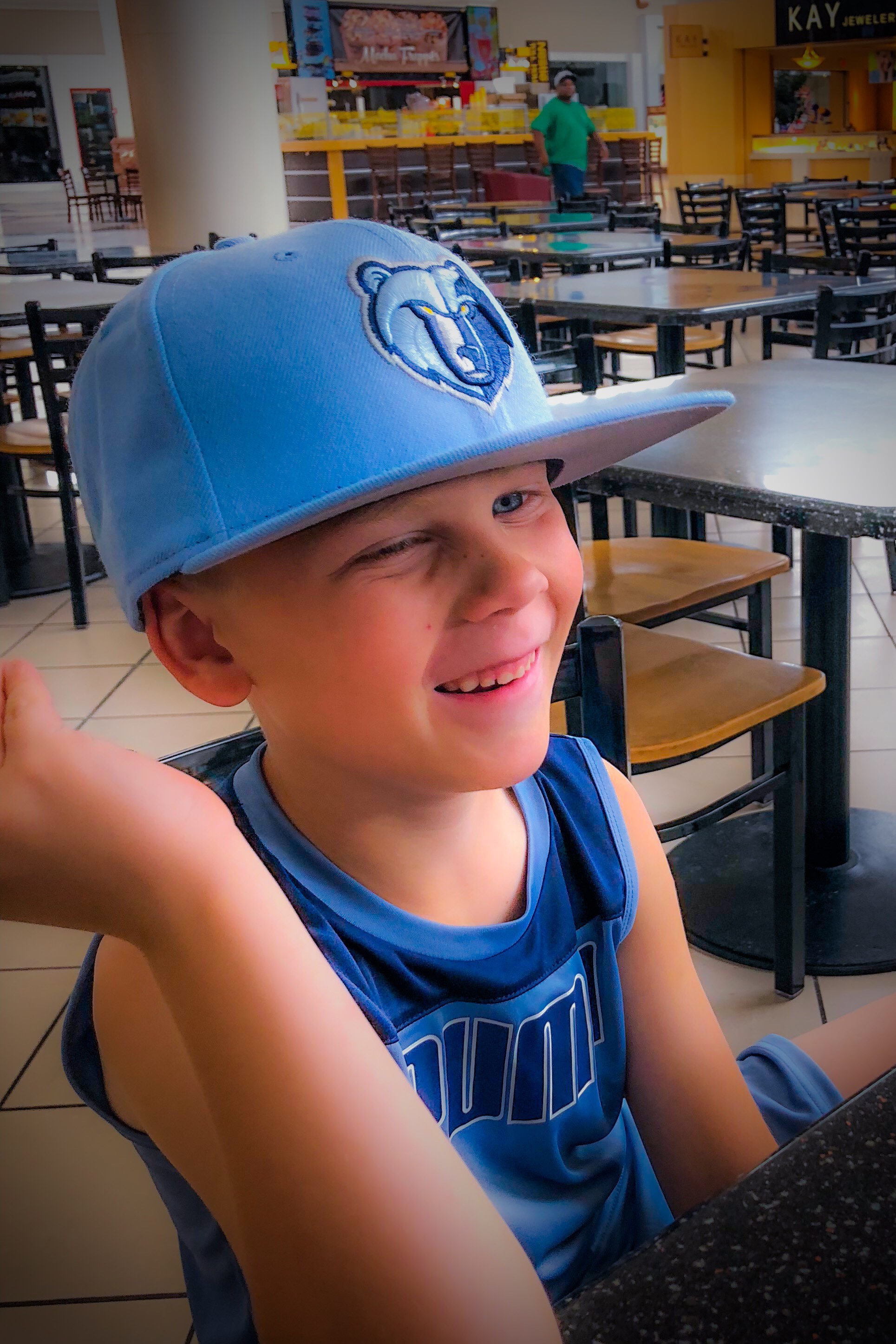 Previous Image Next Image 24d3ec02-fda9-4d22-a974-b0466f8c66d5 Alex wearing his new hat from Lids in the food court.