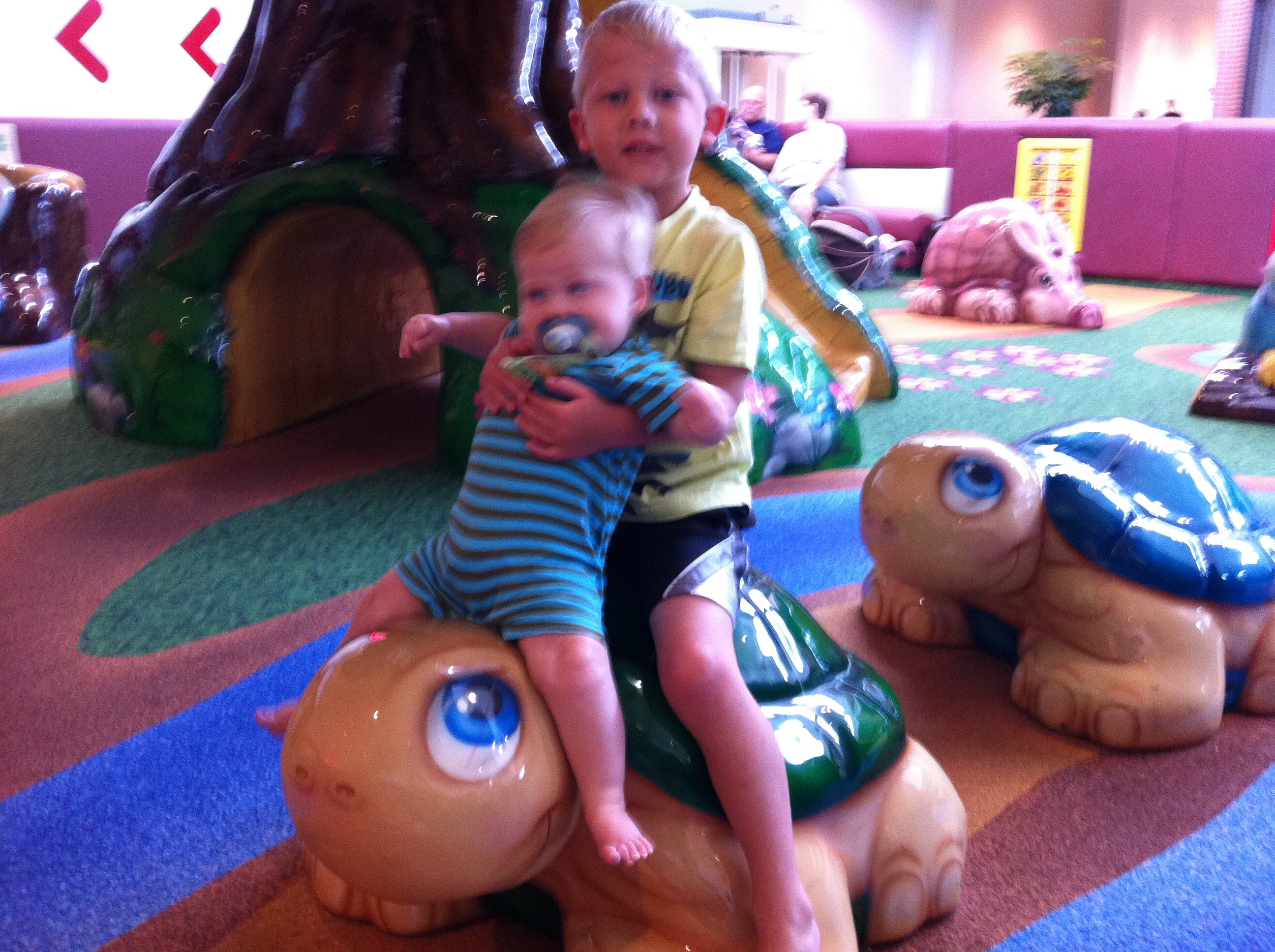 Alex and Teddy playing in the St. Bernards indoor playground.